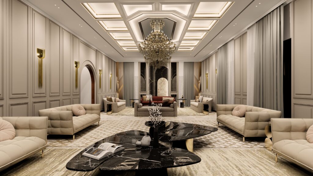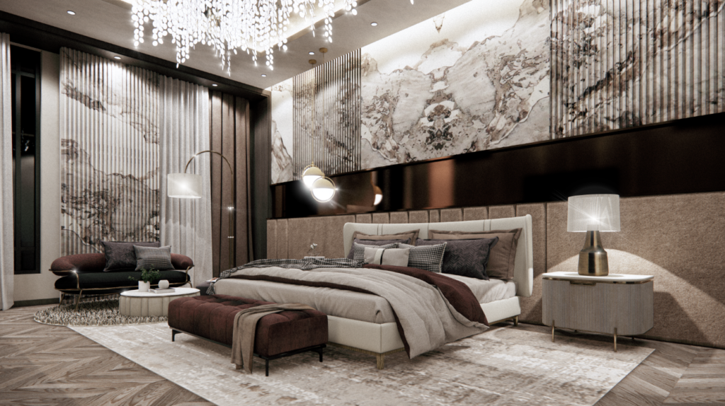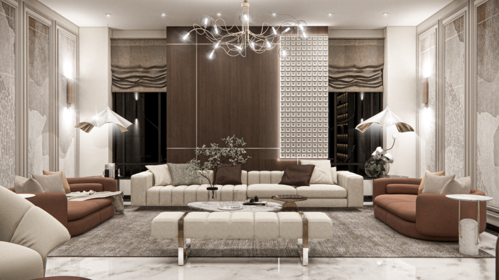 Rich textures, plush seating, and elegant lighting for a serene ambiance